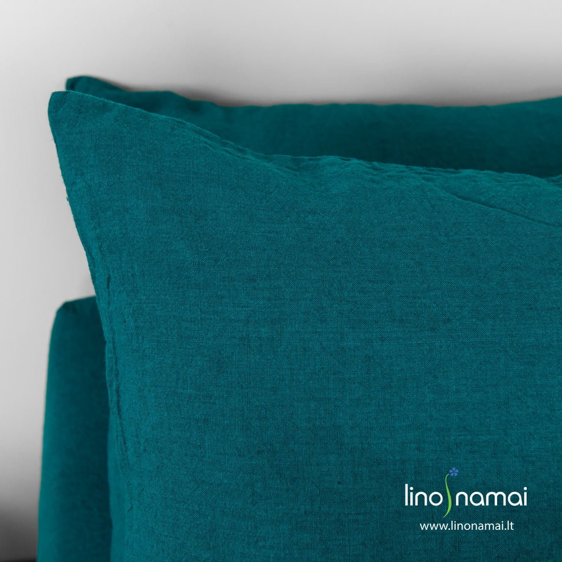 - Tamsios turkio spalvos lininis pagalvės užvalkalas su užkaitu šone.