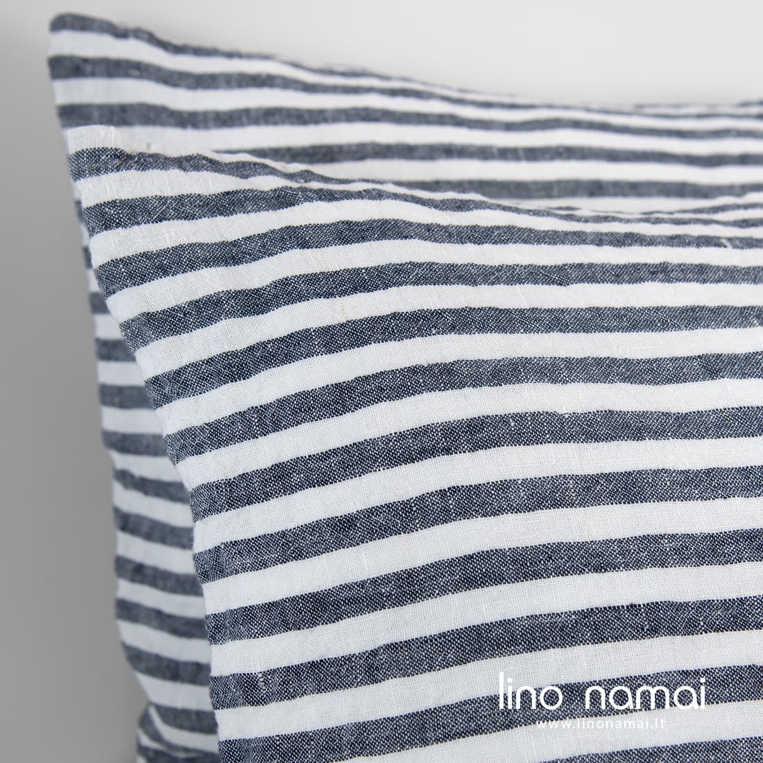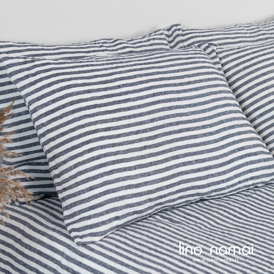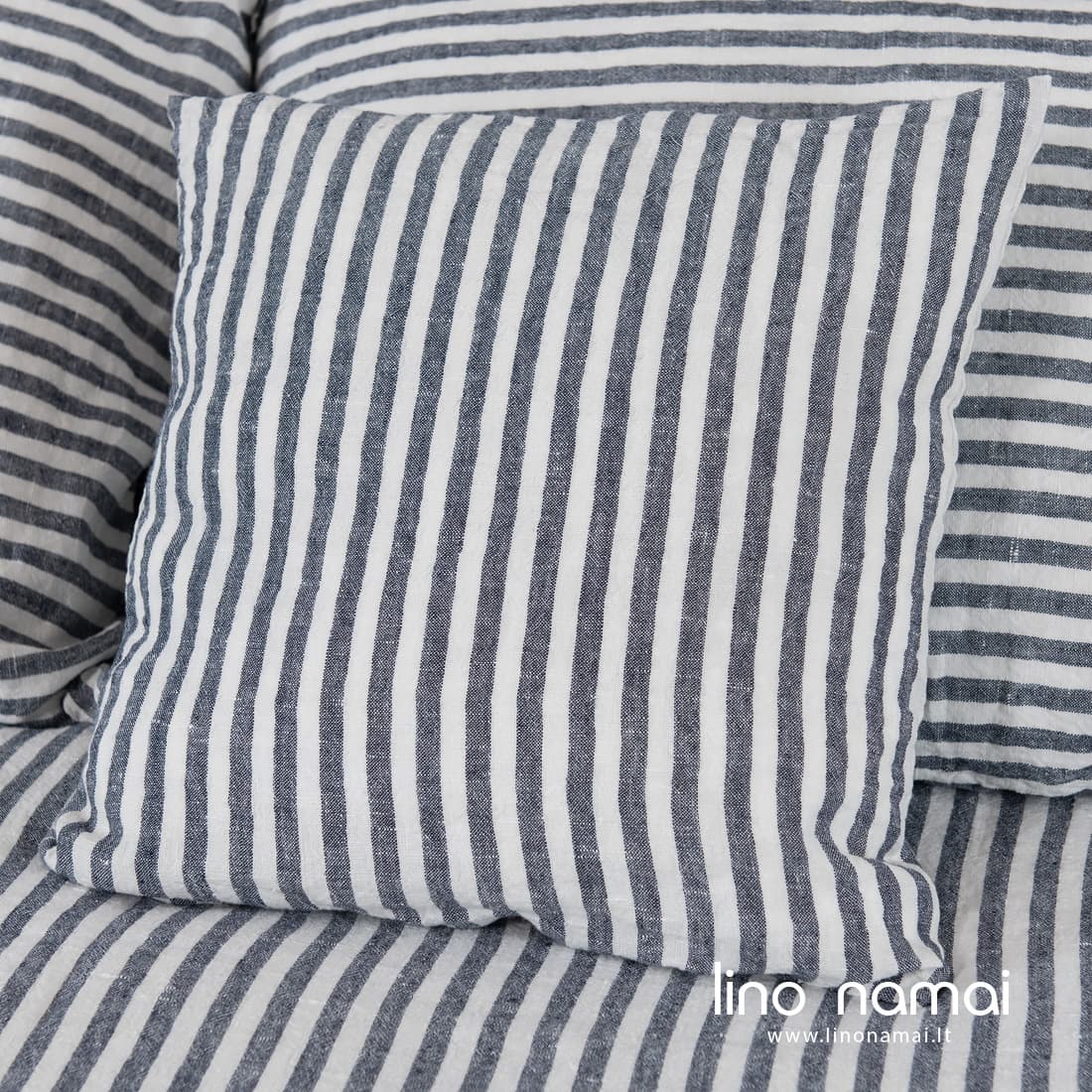 - Mėlynai dryžuotas pagalvės užvalkalas su užkaitu šone