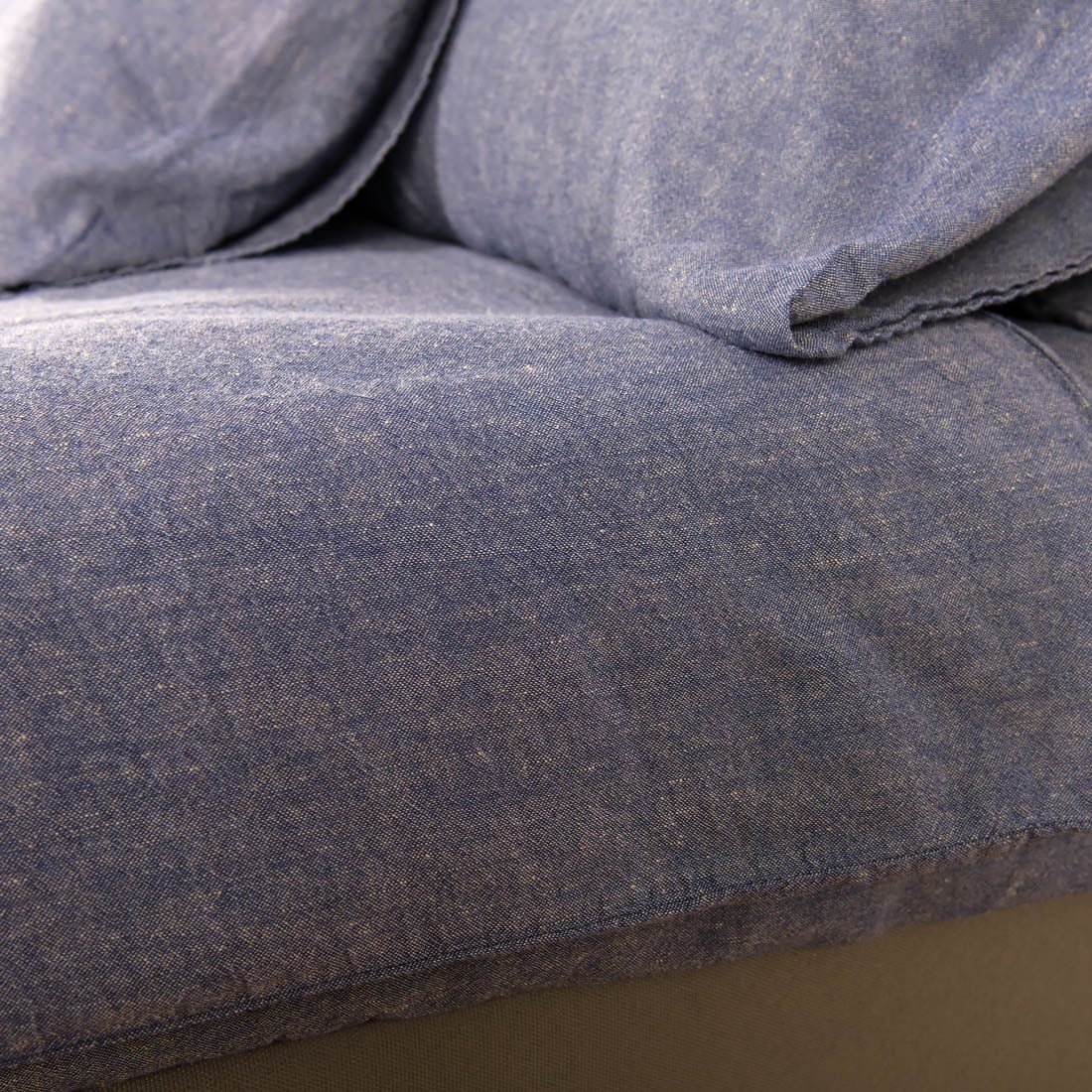 - Melsvas antklodės užvalkalas užsegamas sagomis apačioje.