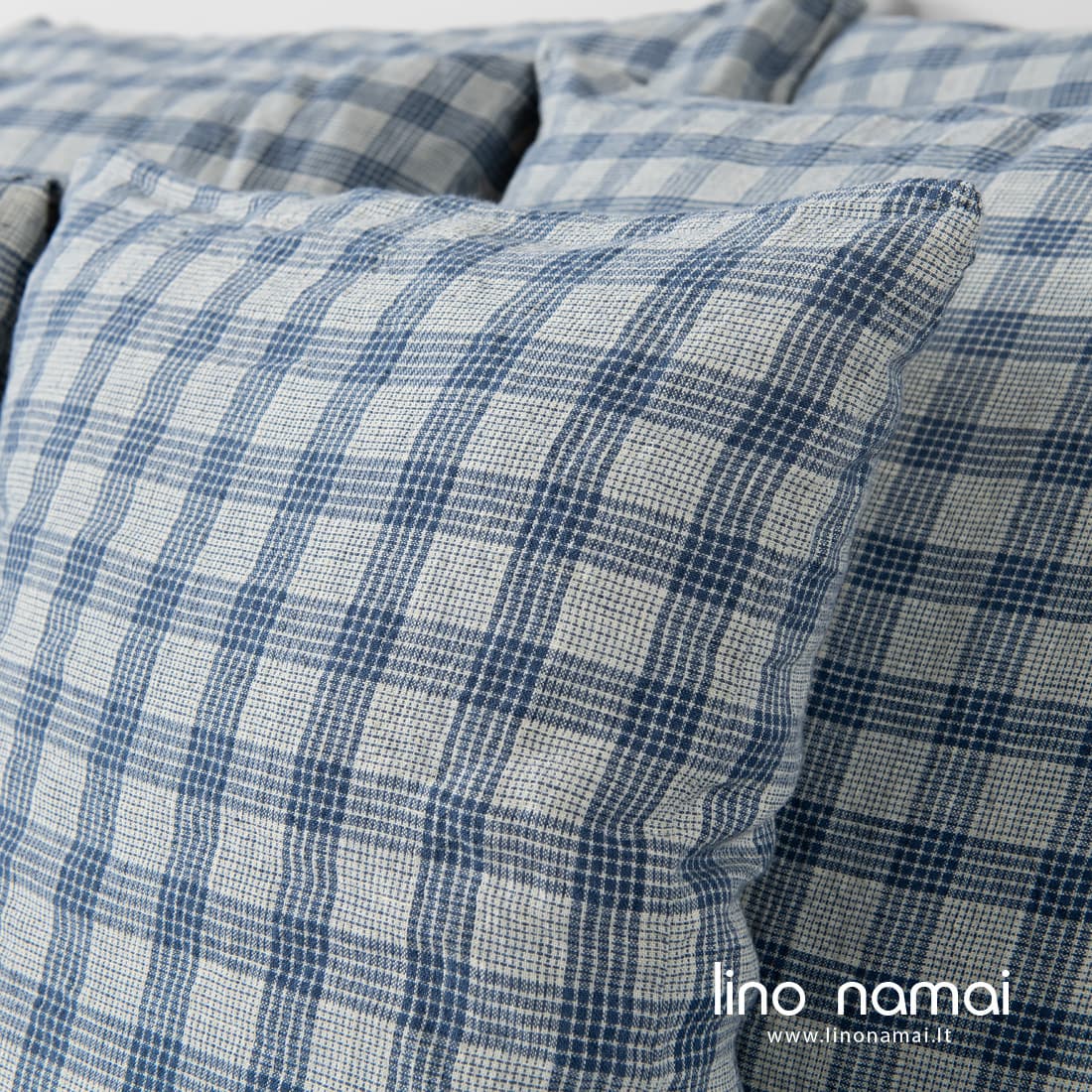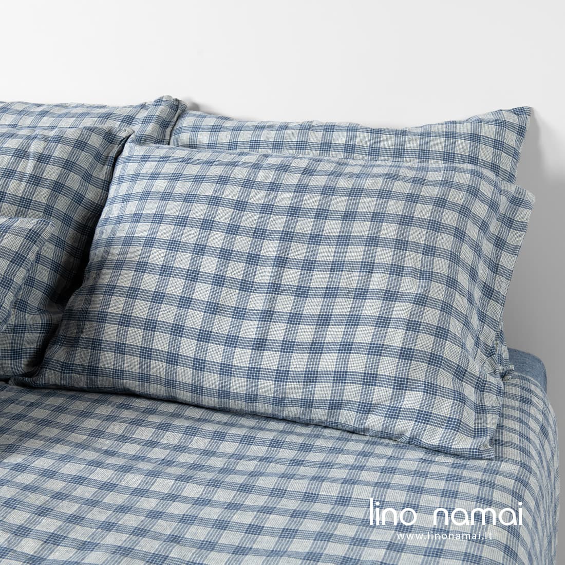 - Mėlynai languotas pagalvės užvalkalas su užkaitu šone