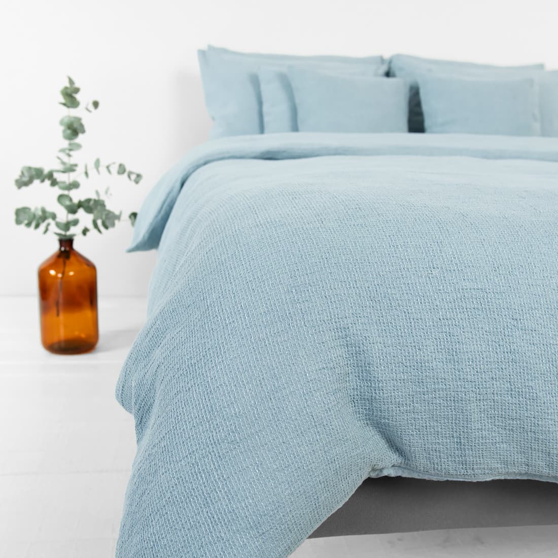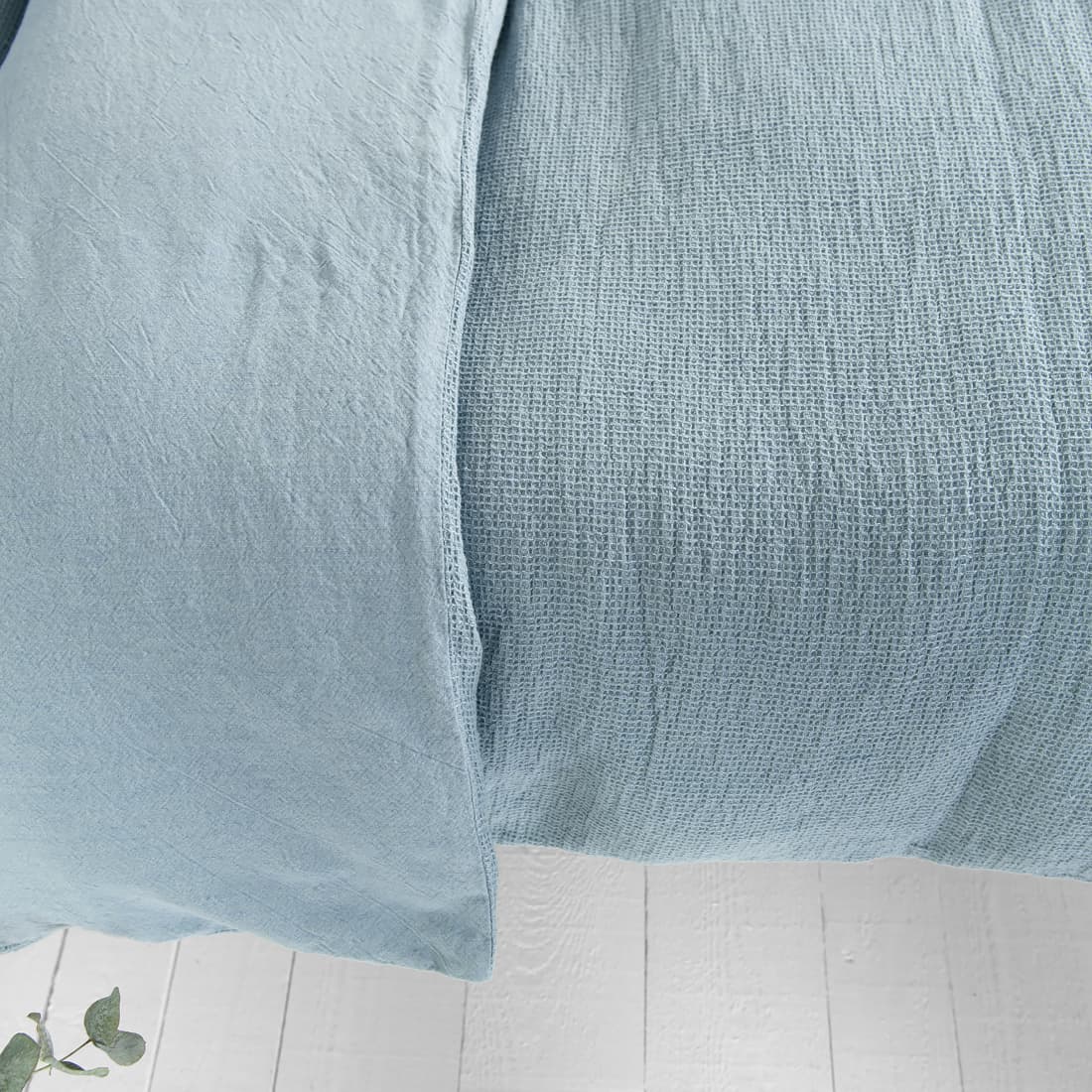 - Antklodės užvalkalas su užtrauktuku apačioje, dvipusis: viena pusė lygaus audinio, kita „vafliniais“ langeliais