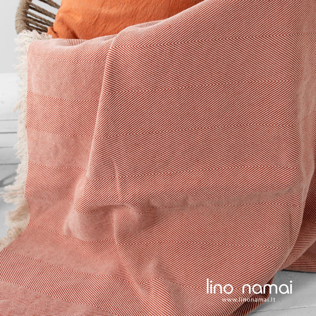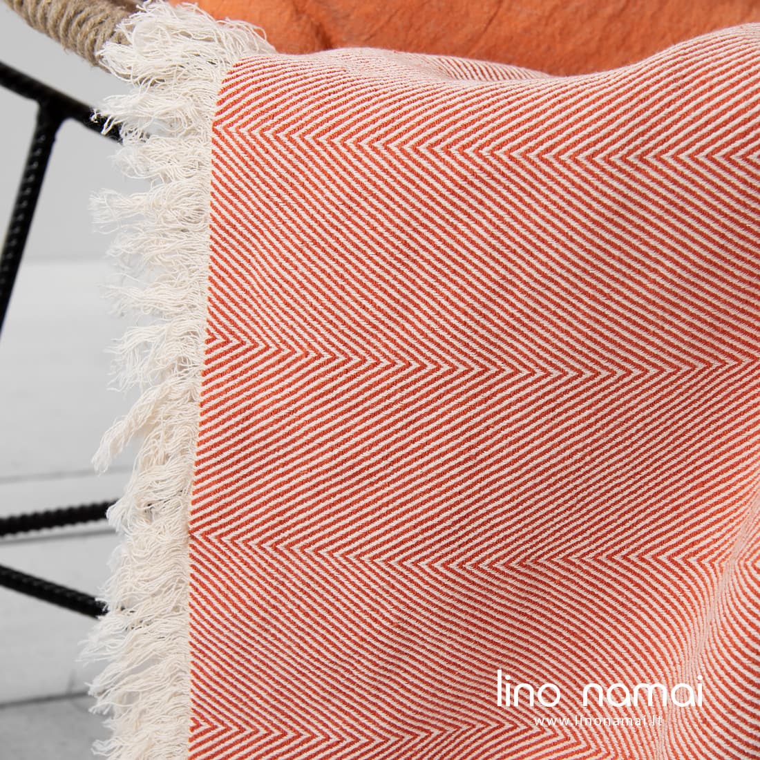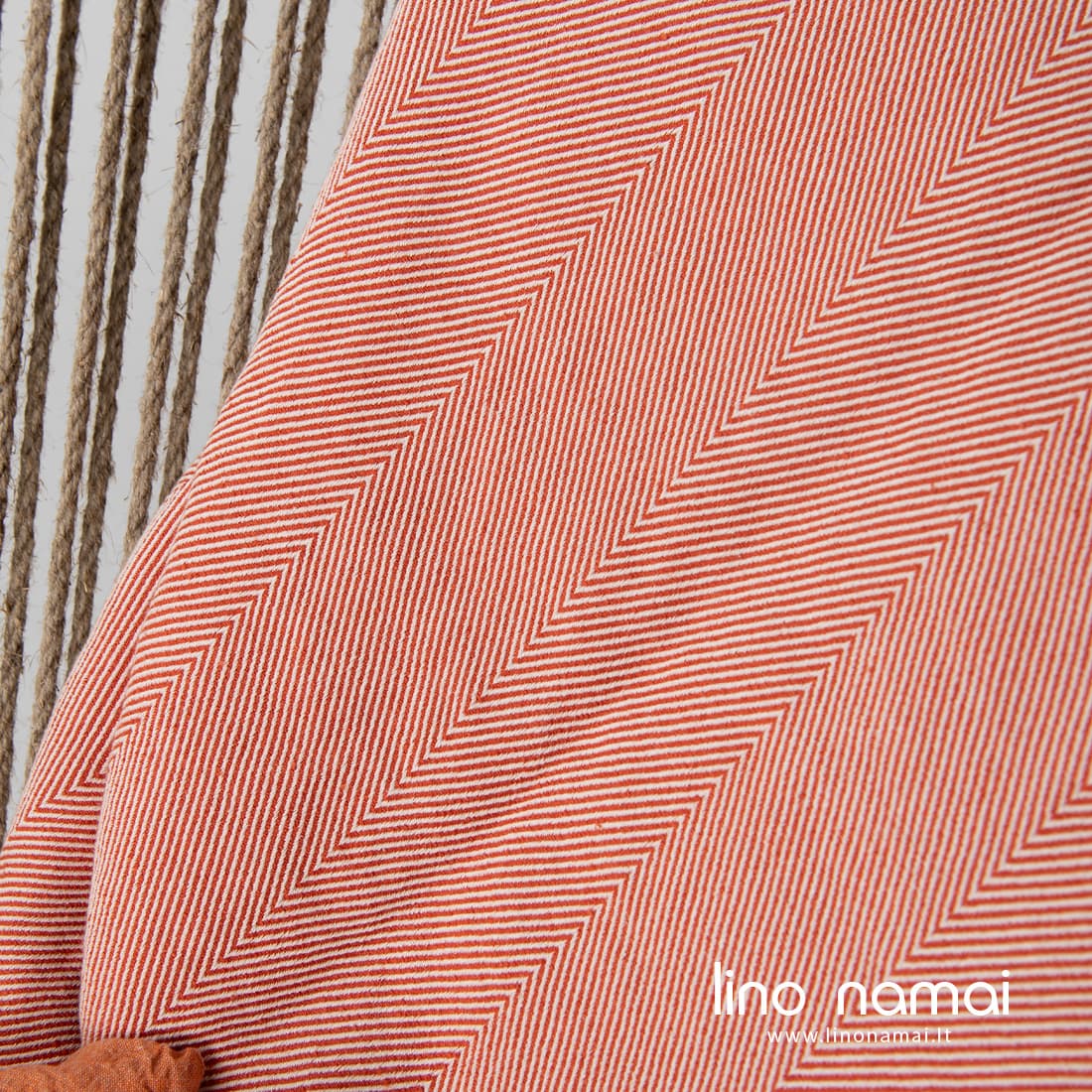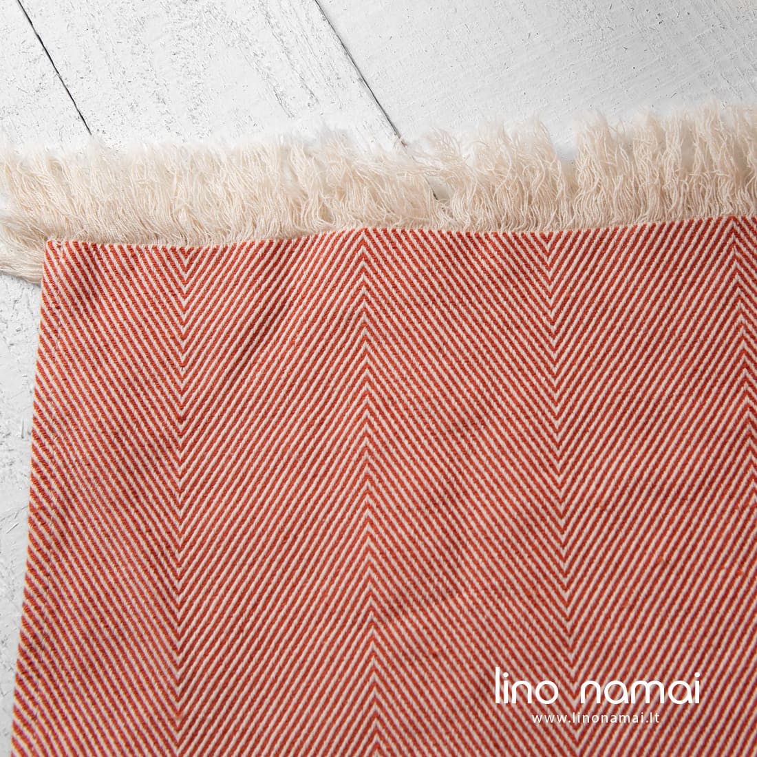 - Spalva: išaustas iš baltos ir oranžinės spalvos verpalų
