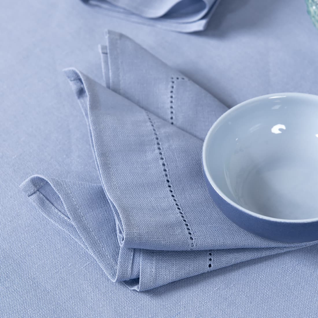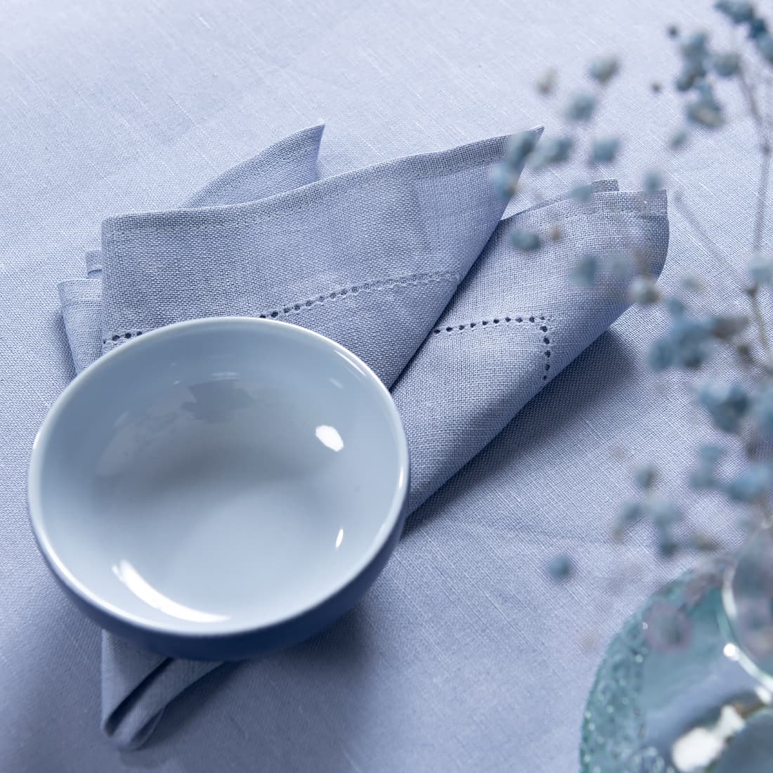 • Puslininė melsva servetėlė su paprastu palenkimu ir mereškavimu aplink