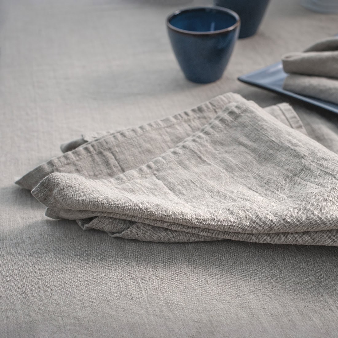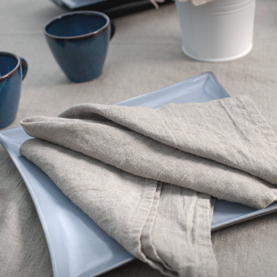 Natūralios pilkos spalvos (rusvai pilka) lininė servetėlė pasiūta iš specialiai skalbto audinio. Nepaprastai minkšta, švelni, truputėlį glamžyta. Nesivarginkite lygindami - šio audinio stalo gaminiai tokie ir turi būti.