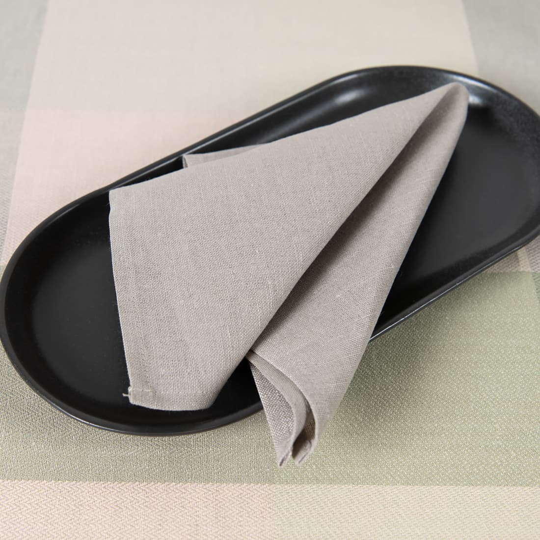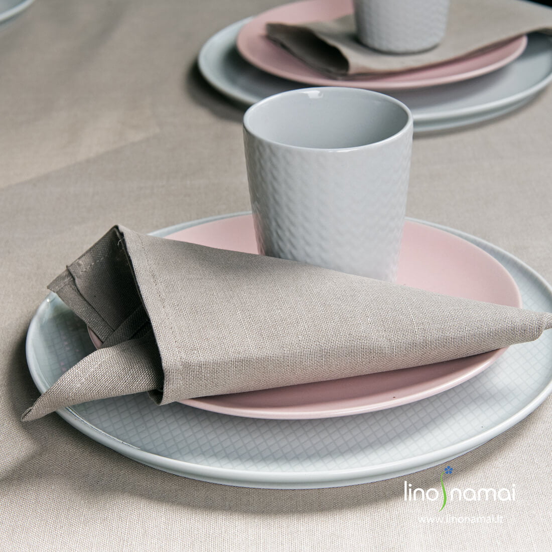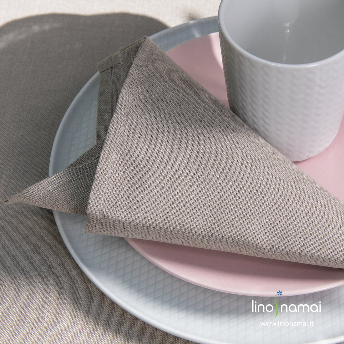 Pilka stalo servetėlė, pagaminta iš lino / medvilnės audinio puikiai tiks šventiniam stalui papuošti, taip pat įvairioms progoms, įprastiems sekmadieniams ar tiesiog kasdienai.