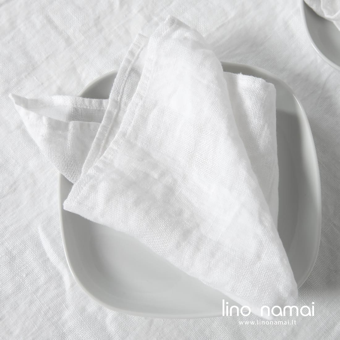 • Languota ryškiai balta lininė servetėlė iš specialiai skalbto audinio