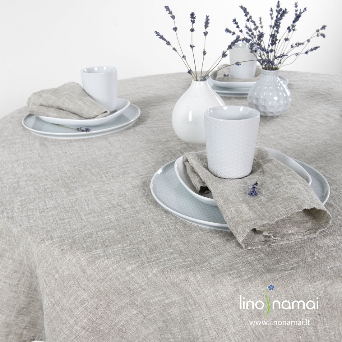 Šviesiai pilka lino - medvilnės servetėlė, skalbta, su atsitiktinai audinyje einančiais dryžiukais iš medvilnės verpalų su specialiais sustorėjimais. Specialiu būdu išskalbėme gaminio audinį tam, kad jis taptų minkštas ir švelnus. Dar vienas privalumas - servetėlių iš tokio audinio nereikia lyginti. Jei ieškote neutralių, bet nenuobodžių servetėlių stalo dekorui, mūsų gaminiai idealiai atitinka Jūsų reikalavimus.