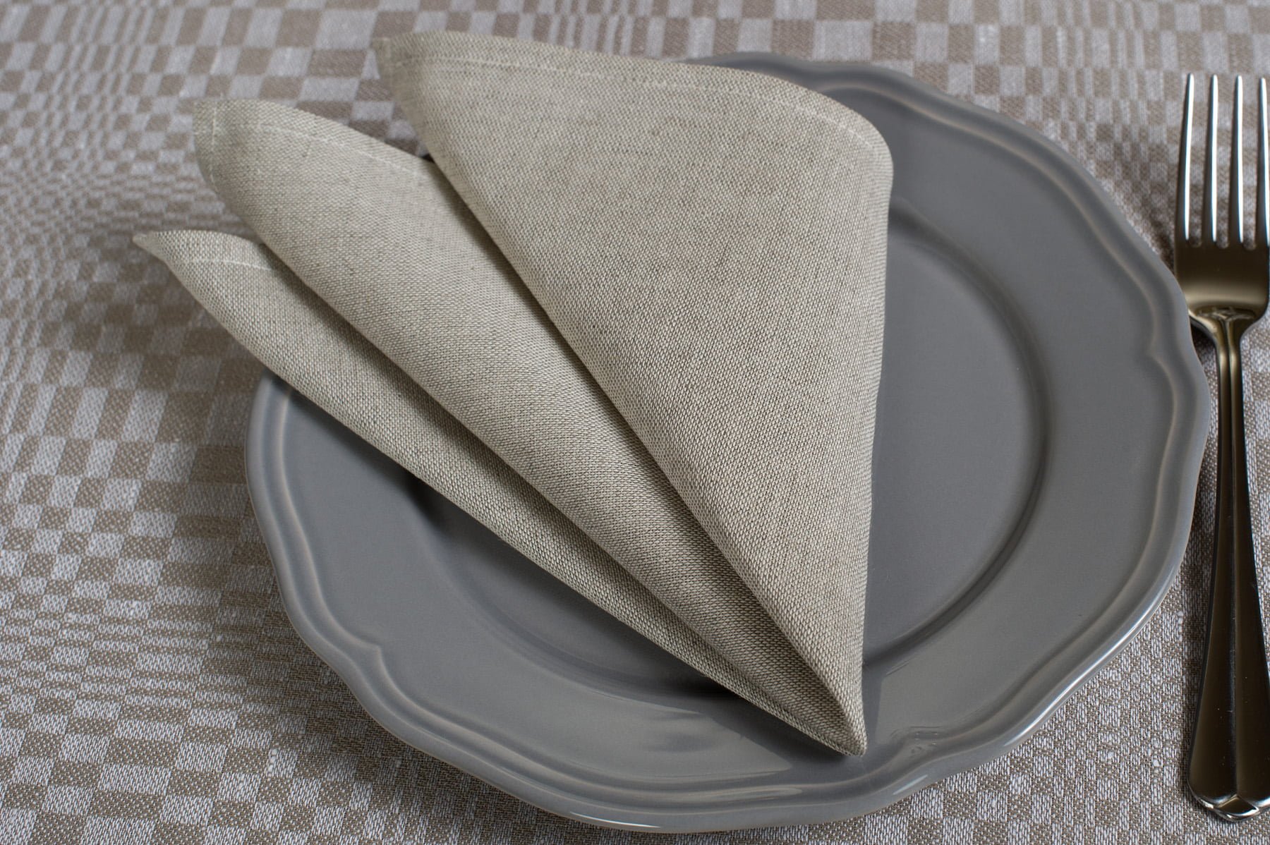 Šios servetėlės audinys austas iš baltų medvilnės ir natūralios pilkos spalvos (nedažytų) lininių verpalų. Su paprastu palenkimu. Galite rinktis iš keturių dydžių ir derinti prie visų pilkų staltiesių.