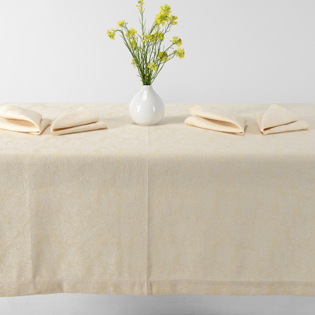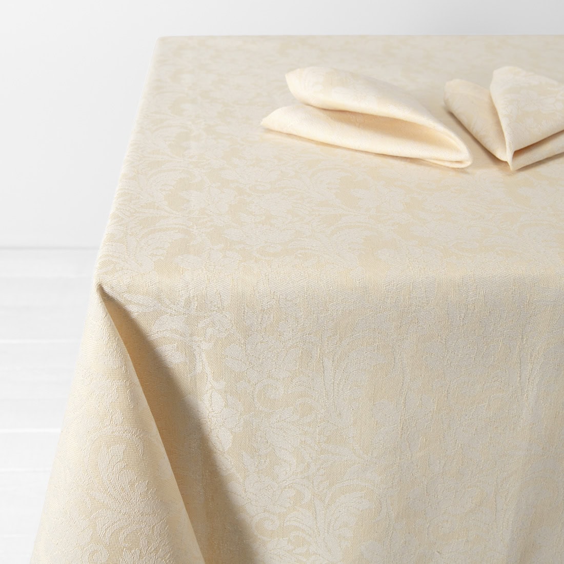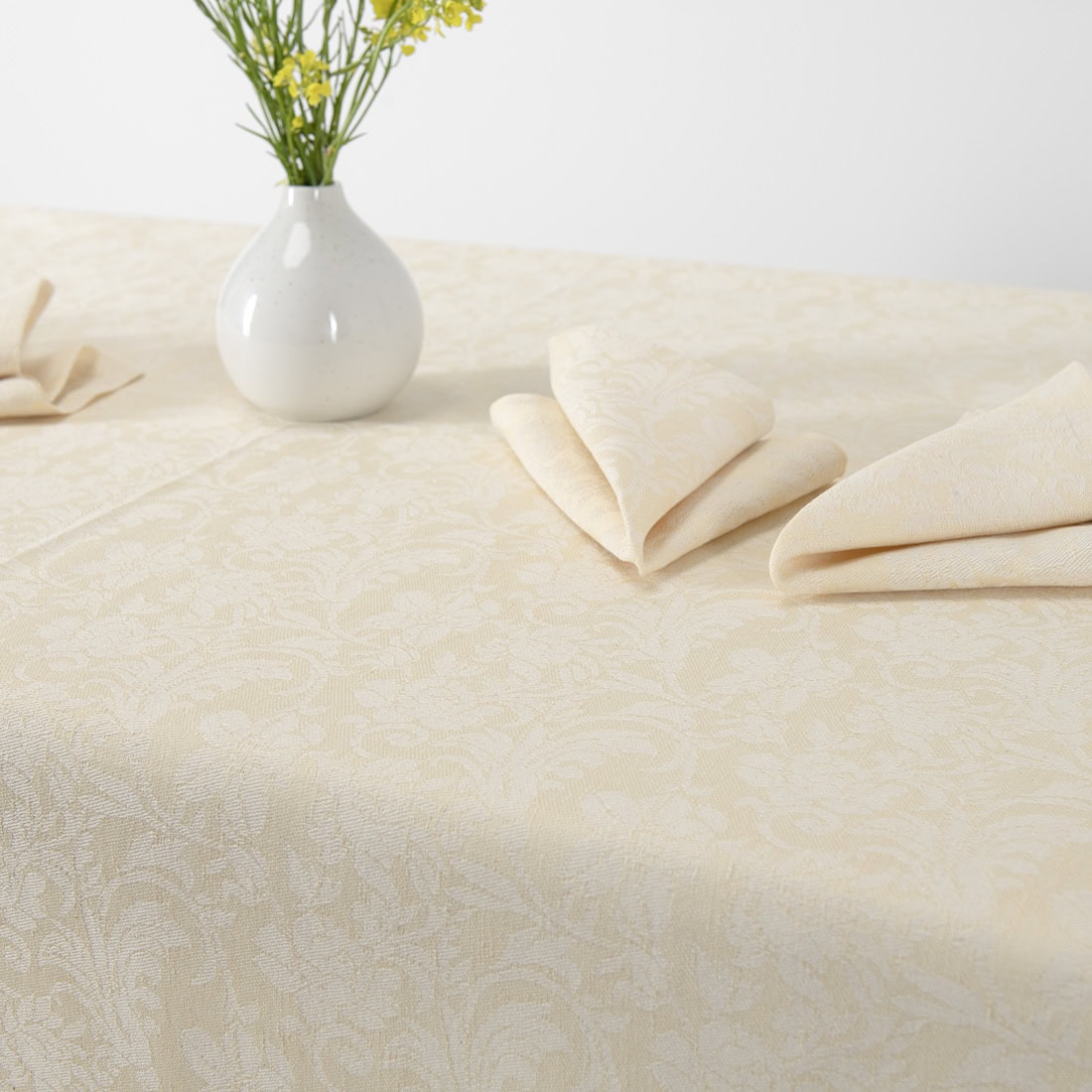 • Puslininė staltiesė kreminės spalvos su įaustomis gėlėmis