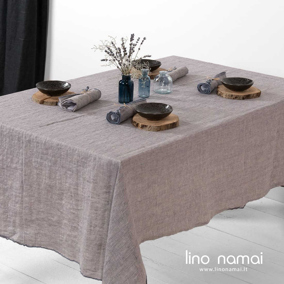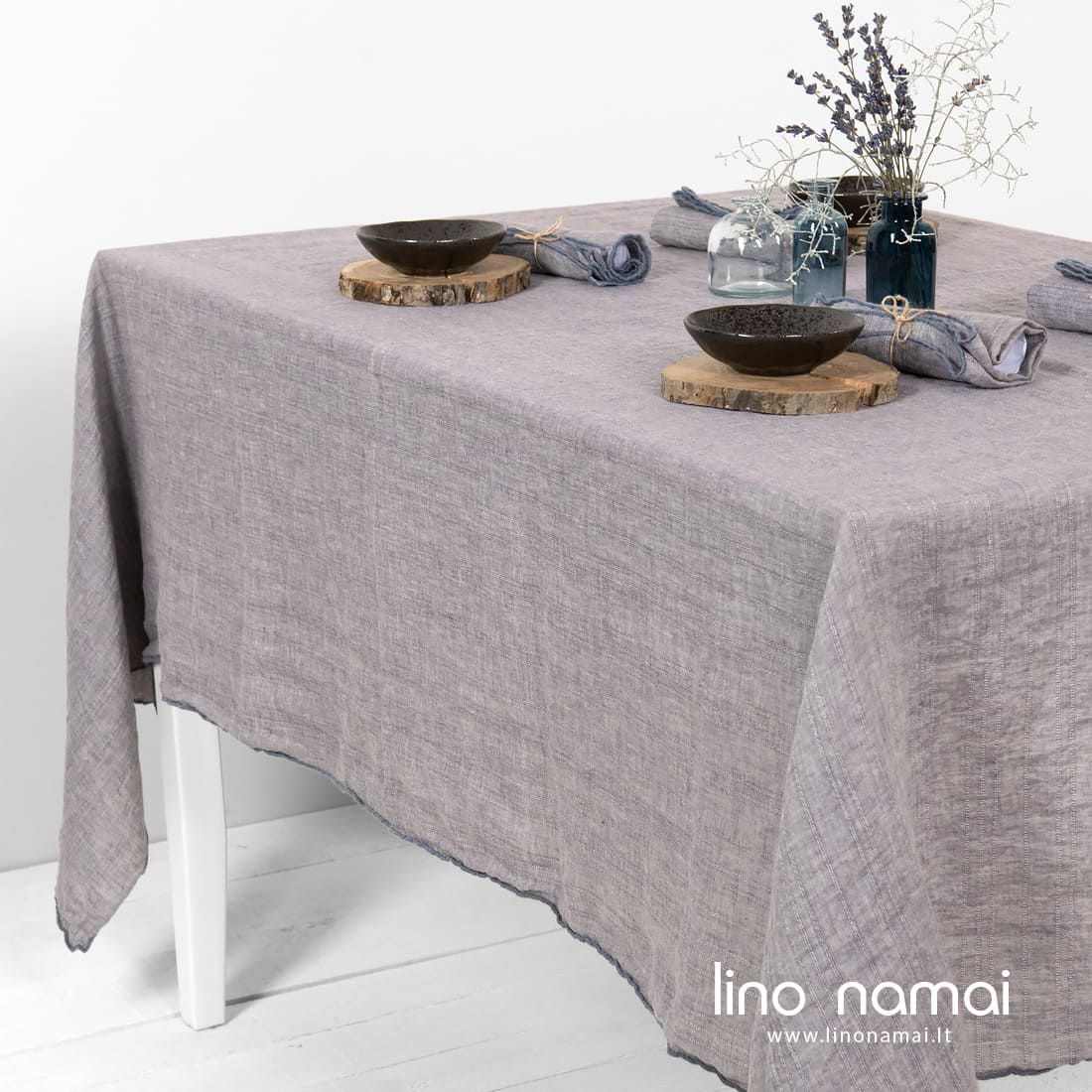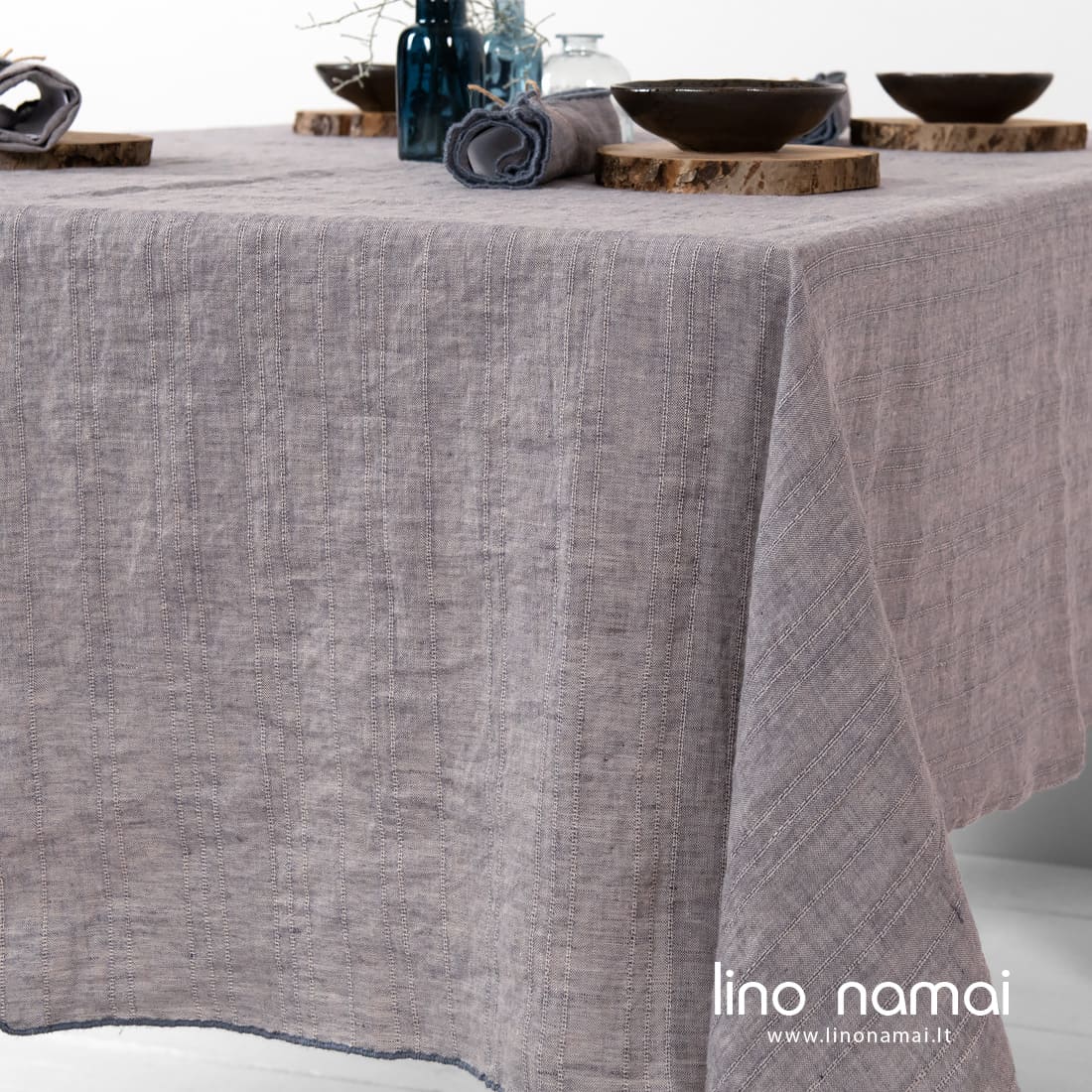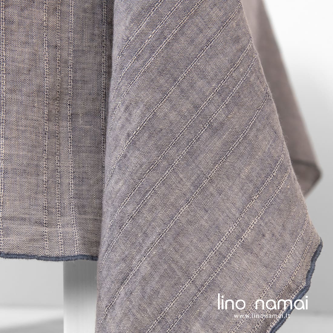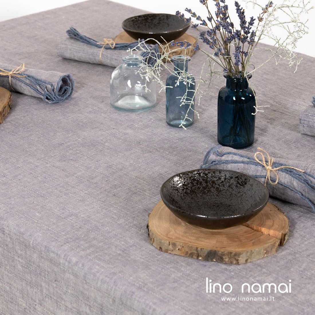 LOBELIA lininė violetinė staltiesė. Šio gaminio audinyje derinti violetiniai ir smėlio spalvos (šviesūs gelsvai rusvi) verpalai, išausti siauri ažūriniai dryžiai. Prieš siūdami staltiesę lino audinį išskalbėme specialia technologija, kad suteiktumėme jam minkštumo, purumo, švelnumo. Staltiesės kraštinės apsiūtos tamsesne tankia dekoratyvine siūle. Nepriekaištingam stalo dekorui rekomenduojame įsigyti tokio paties audinio servetėlių rinkinį. Ši staltiesė puikiai tinka greitam stalo papuošimui (Skalbto audinio nereikia lyginti!), jaukiems šeimos pietums sekmadienį ar smagiam neįpareigojančiam draugų susibėgimui.