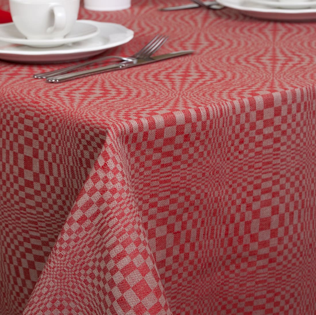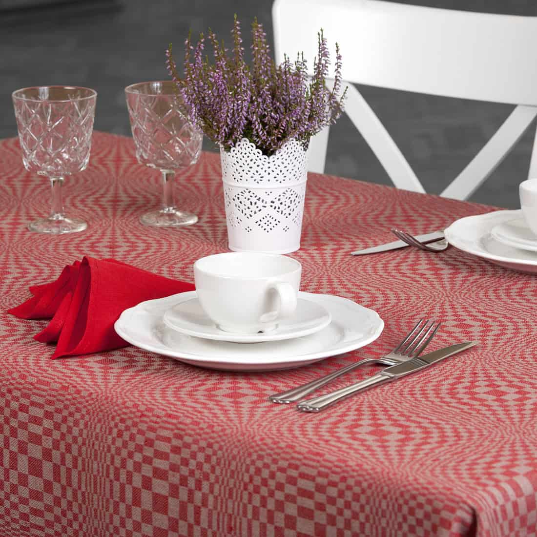 Lino - medvilnės sudėties staltiesė įvairaus dydžio raudonais ir pilkais langeliais. Jei neįsivaizduojate savo šventinio stalo be raudonos spalvos, išbandykite raudonos ir pilkos derinį bei įdomų audimo raštą. Tikrai nustebinsite svečius. Derančių vienspalvių raudonų ir pilkų servetėlių taip pat įsigysite mūsų internetinėje parduotuvėje.