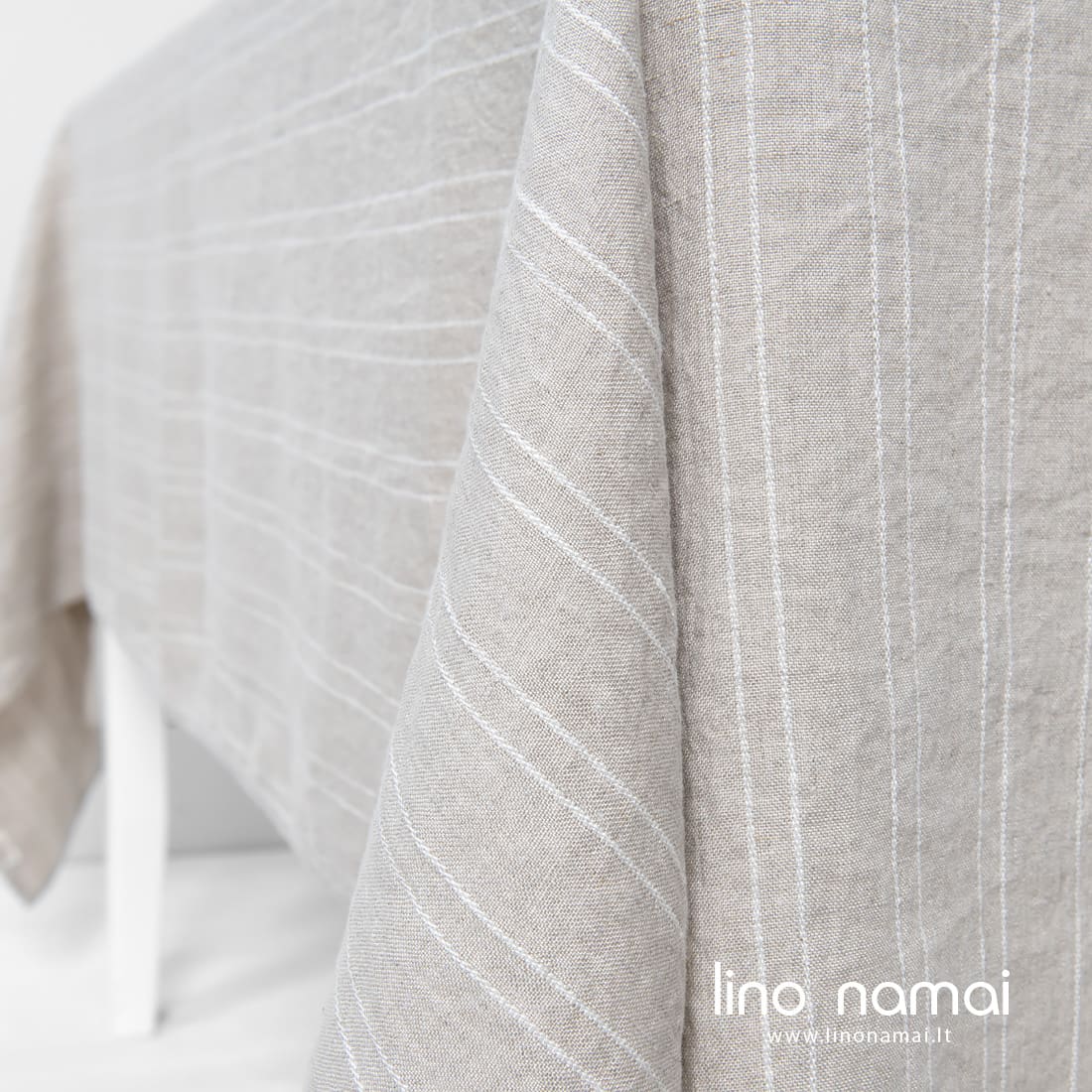 Pastaba: Audžiant šio gaminio audinį naudoti natūralios spalvos (nedažyti) lininiai verpalai, todėl Jūsų gauto gaminio atspalvis gali šiek tiek skirtis nuo matomo nuotraukoje. Užsisakant pakartotinai atspalvis taip pat gali skirtis. Gaminys pasiūtas iš skalbto audinio, todėl jo dydis gali šiek tiek svyruoti.