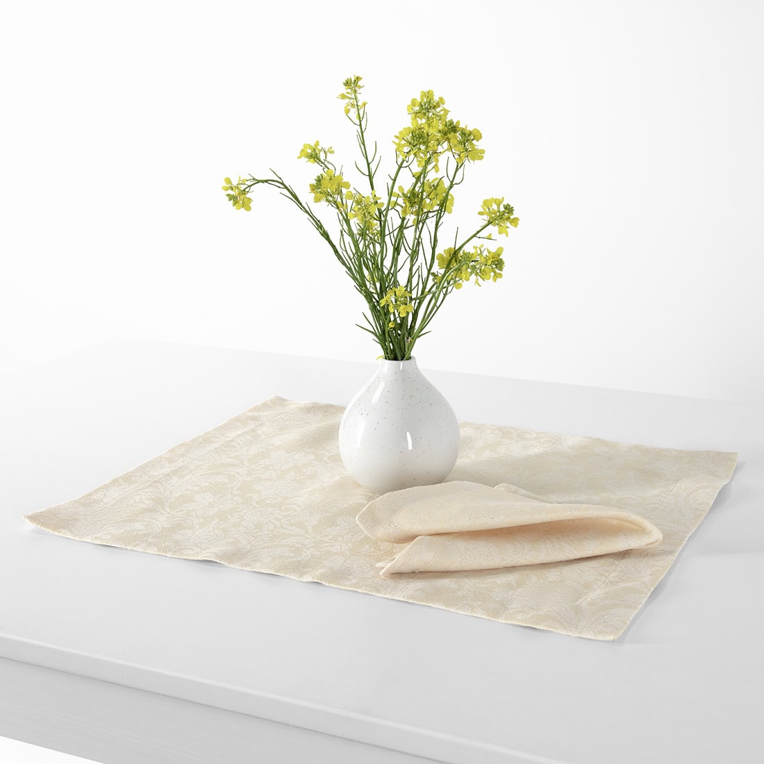 • Puslininis patiesaliukas kreminės spalvos gėlėtas žakardinis