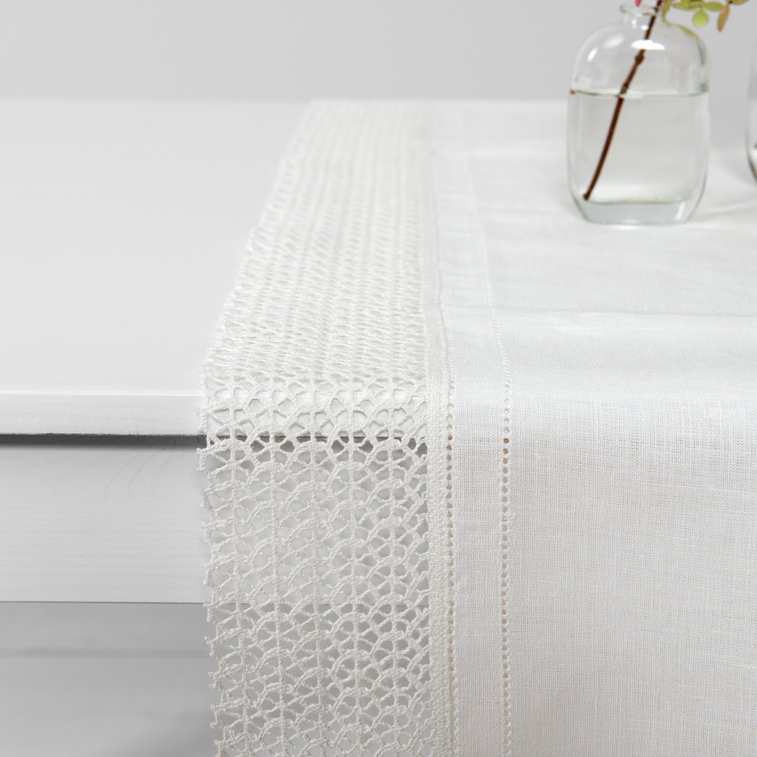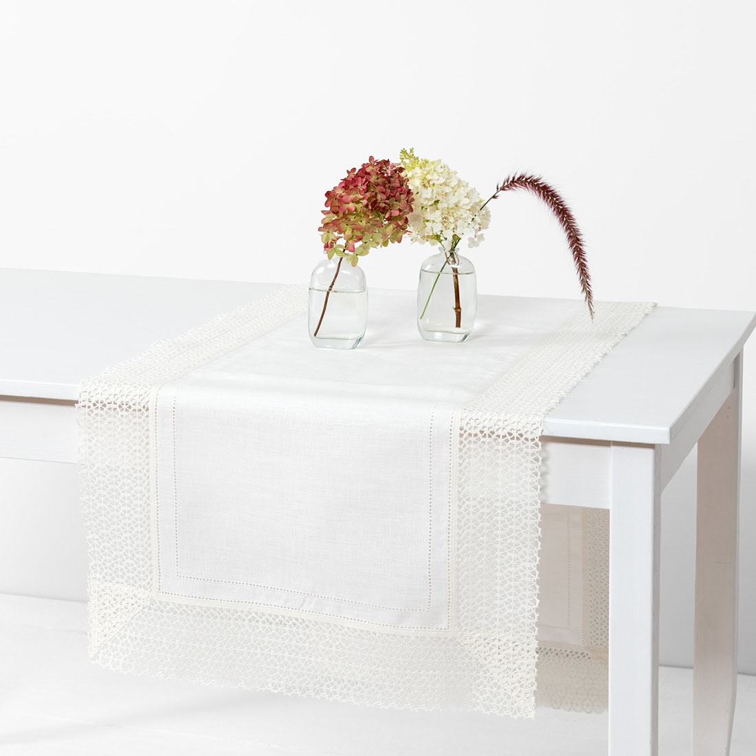 - Borto / krašto tipas: 9cm pločio pieno baltumo nėrinys ir 2 mereškuotos eilutės