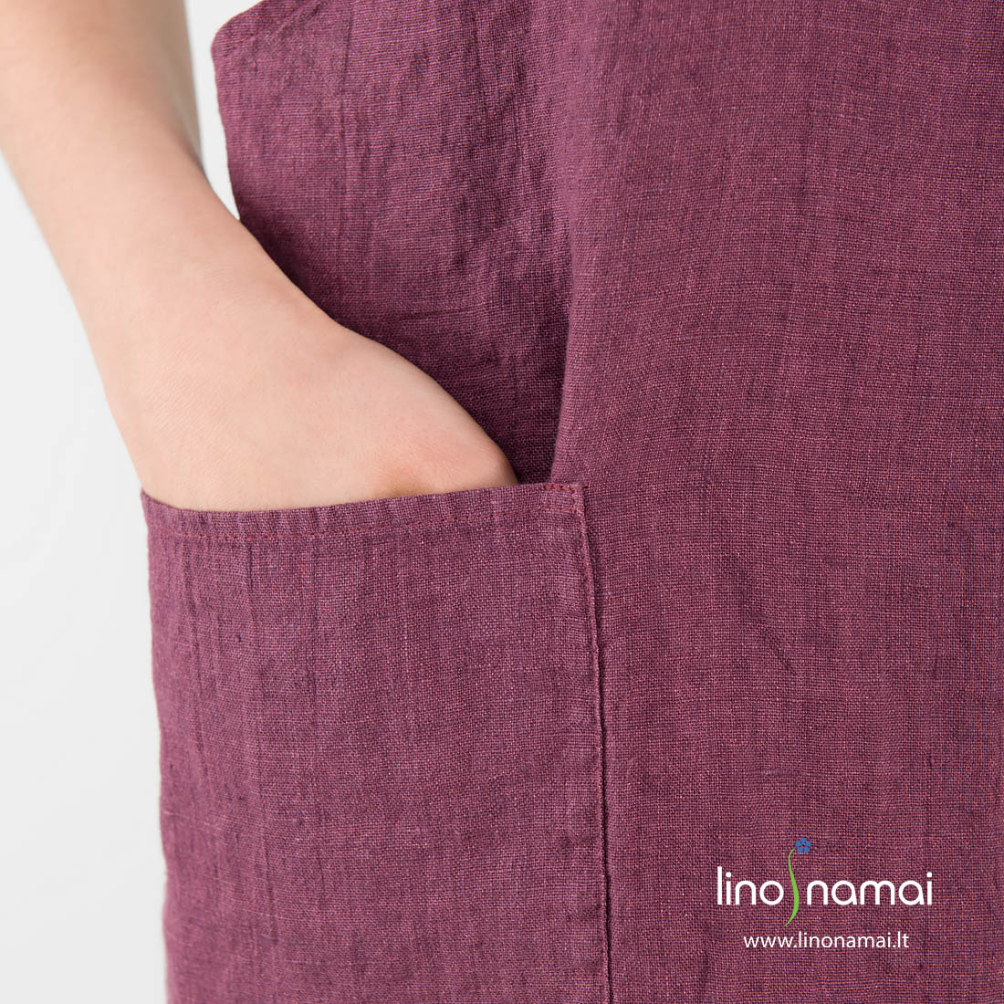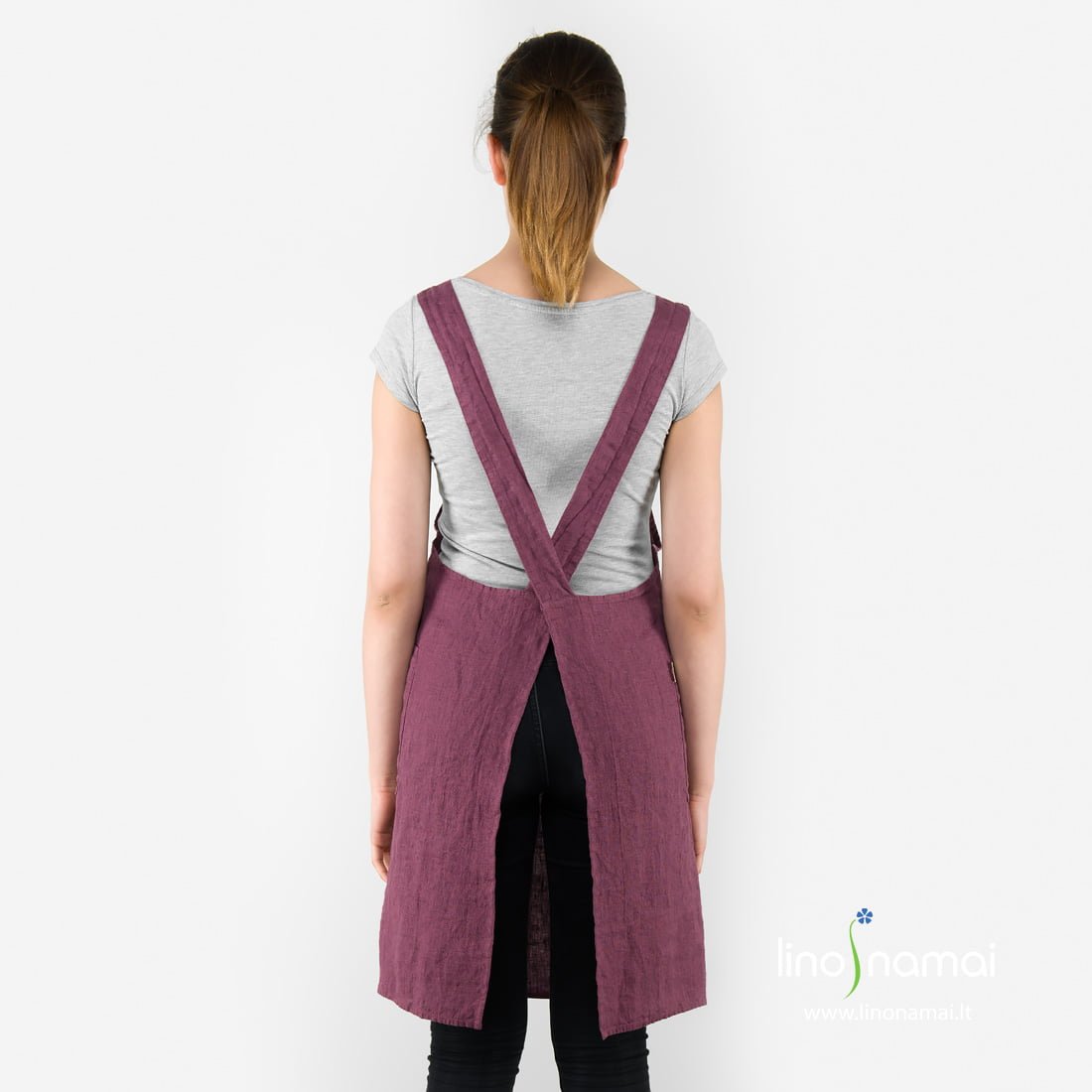 Lininė prijuostė vyšninė (tamsiai raudona, uogų spalvos) su kišenėmis priekyje. Pasiūta iš minkšto, švelnaus skalbto audinio. Kitaip nei visos kitos prijuostės mūsų parduotuvėje, ši prijuostė turi ne surišimo raištelius, o plačias sukryžiuojamas petnešas nugaroje. Išbandykite! Gal būtent tokia prijuostė bus patogesnė gaminant? O ir nuostabi spalva, tikime, prisidės prie geros auros sukūrimo virtuvėje. Gaminkite pasipuošusios!
