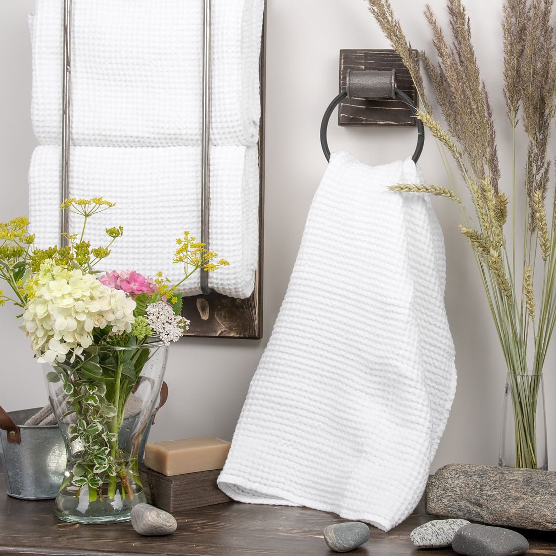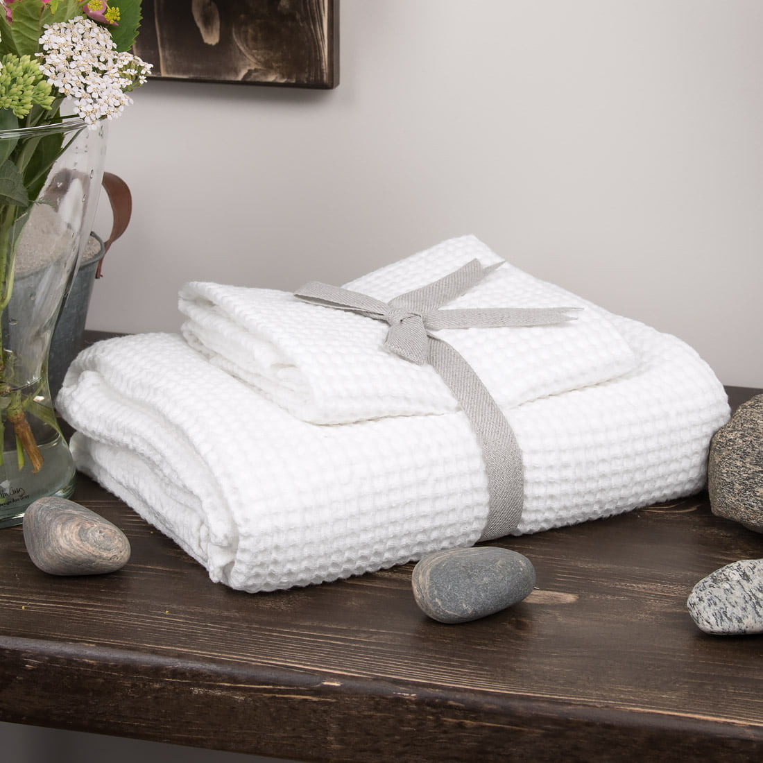 Puikios kokybės skalbtas vonios rankšluostis - storas, tankus, patvarus, gerai sugeriantis drėgmę ir švelniai masažuojantis, su kilpute pakabinimui. Dailaus ''vaflinio'' rašto ir baltos spalvos rankšluostis tinkamas naudoti vonioje ir pirtyje.