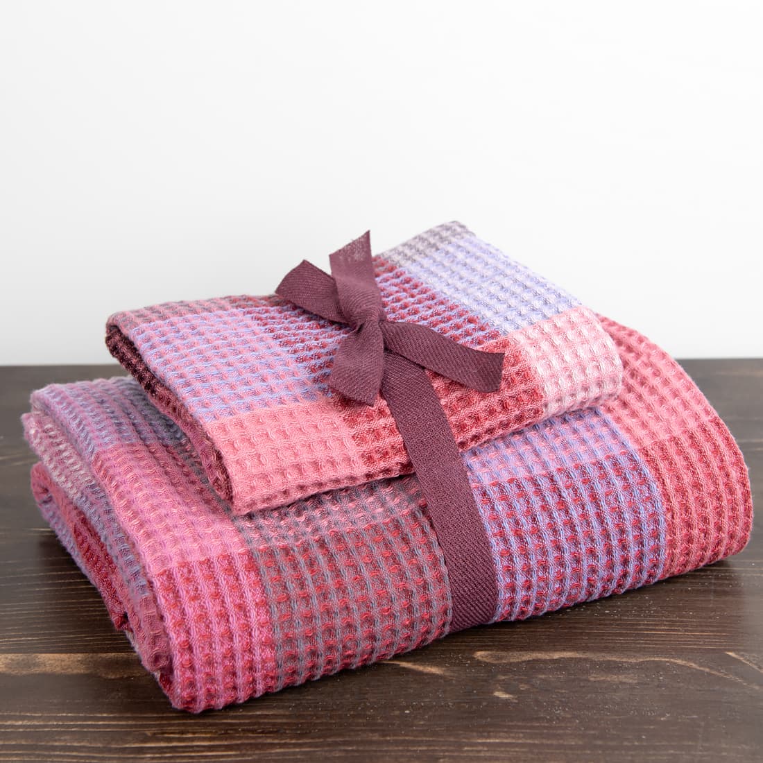 - Detalės: kilpelė pakabinimui. Rankšluosčių rinkinys perrištas derančios spalvos juostele
