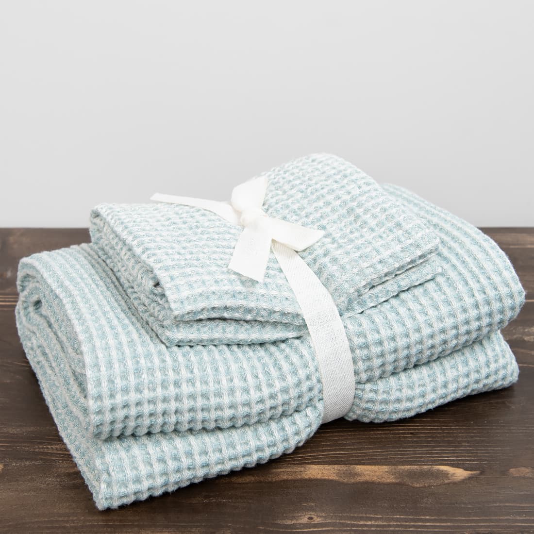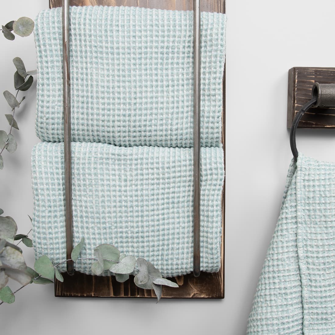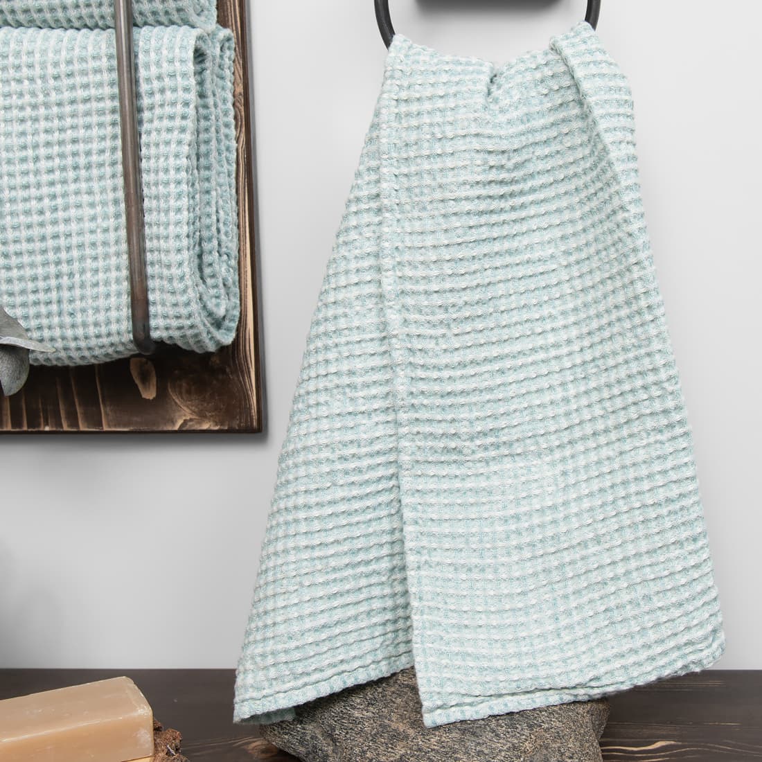 - Detalės: kilpelė pakabinimui. Rankšluosčių rinkinys perrištas plačia juostele