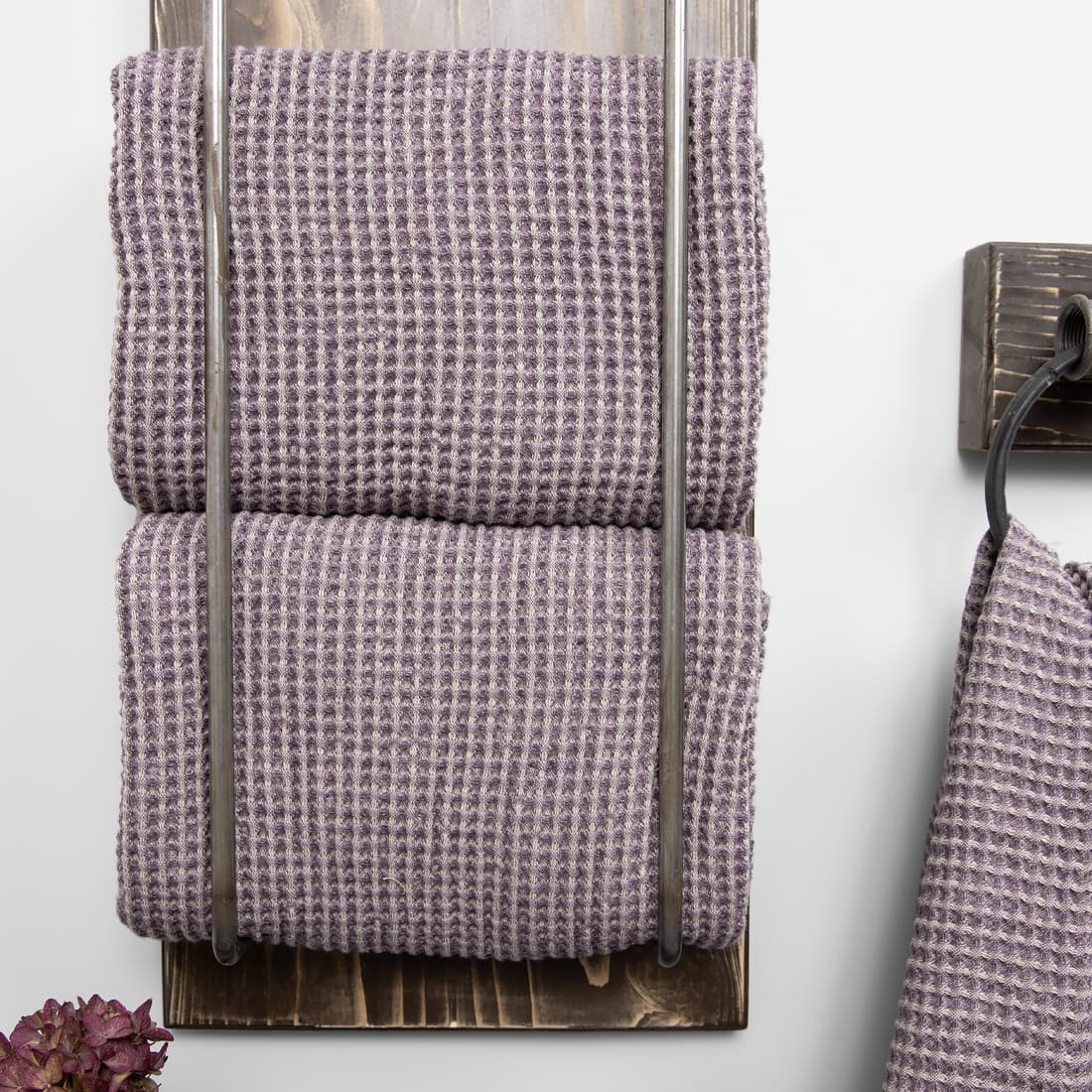 - Detalės: kilpelė pakabinimui. Rankšluosčių rinkinys perrištas plačia juostele