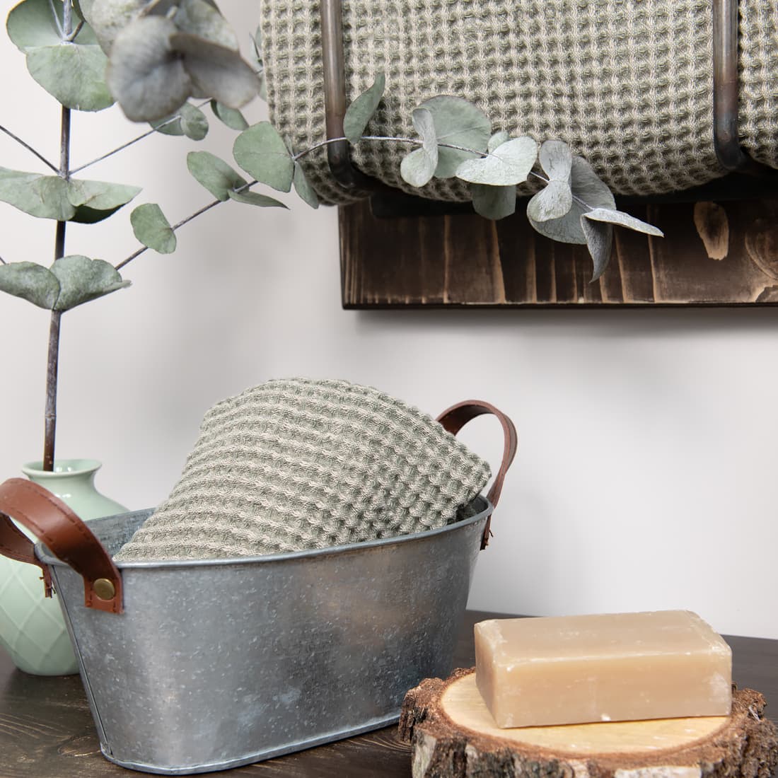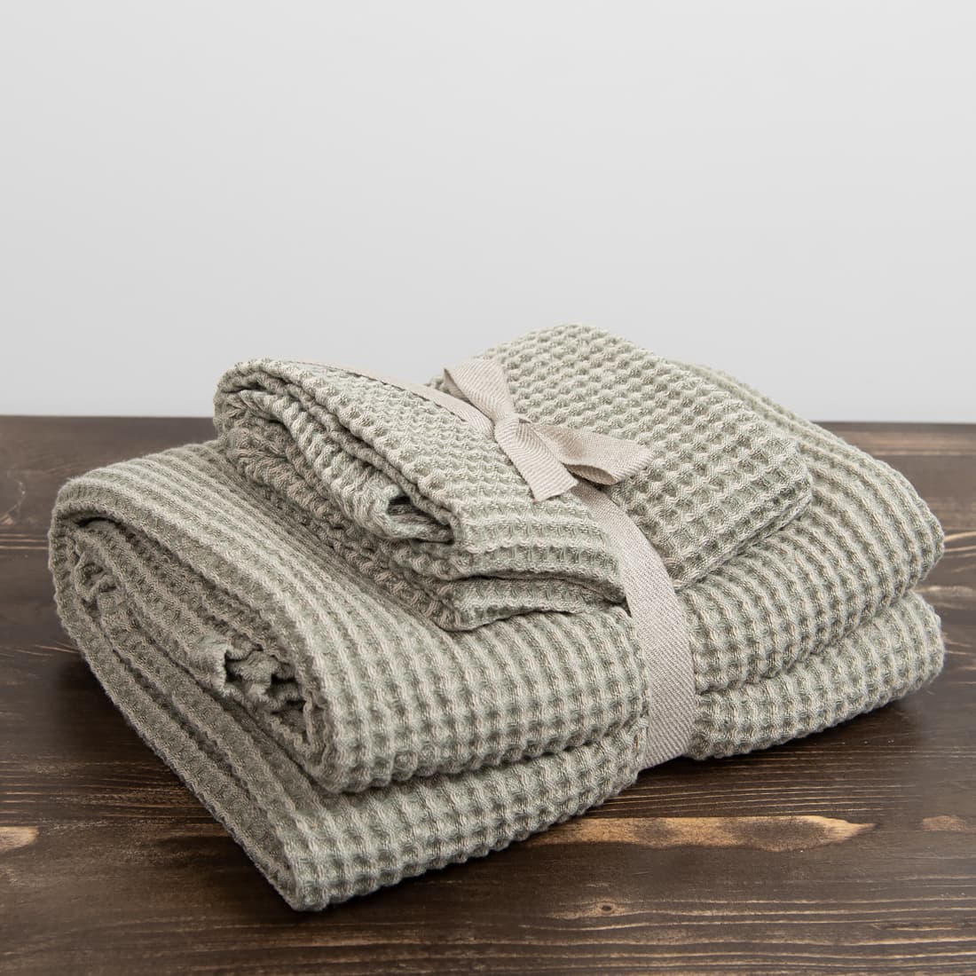 - Detalės: kilpelė pakabinimui. Rankšluosčių rinkinys perrištas plačia juostele