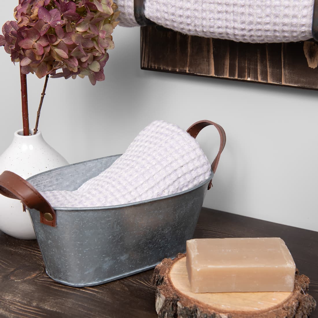 - Detalės: kilpelė pakabinimui. Rankšluosčių rinkinys perrištas plačia juostele