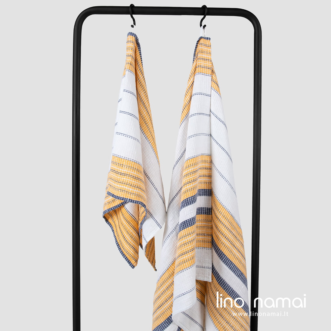 - Spalva: baltas fonas; geltoni, mėlyni dryžiai
