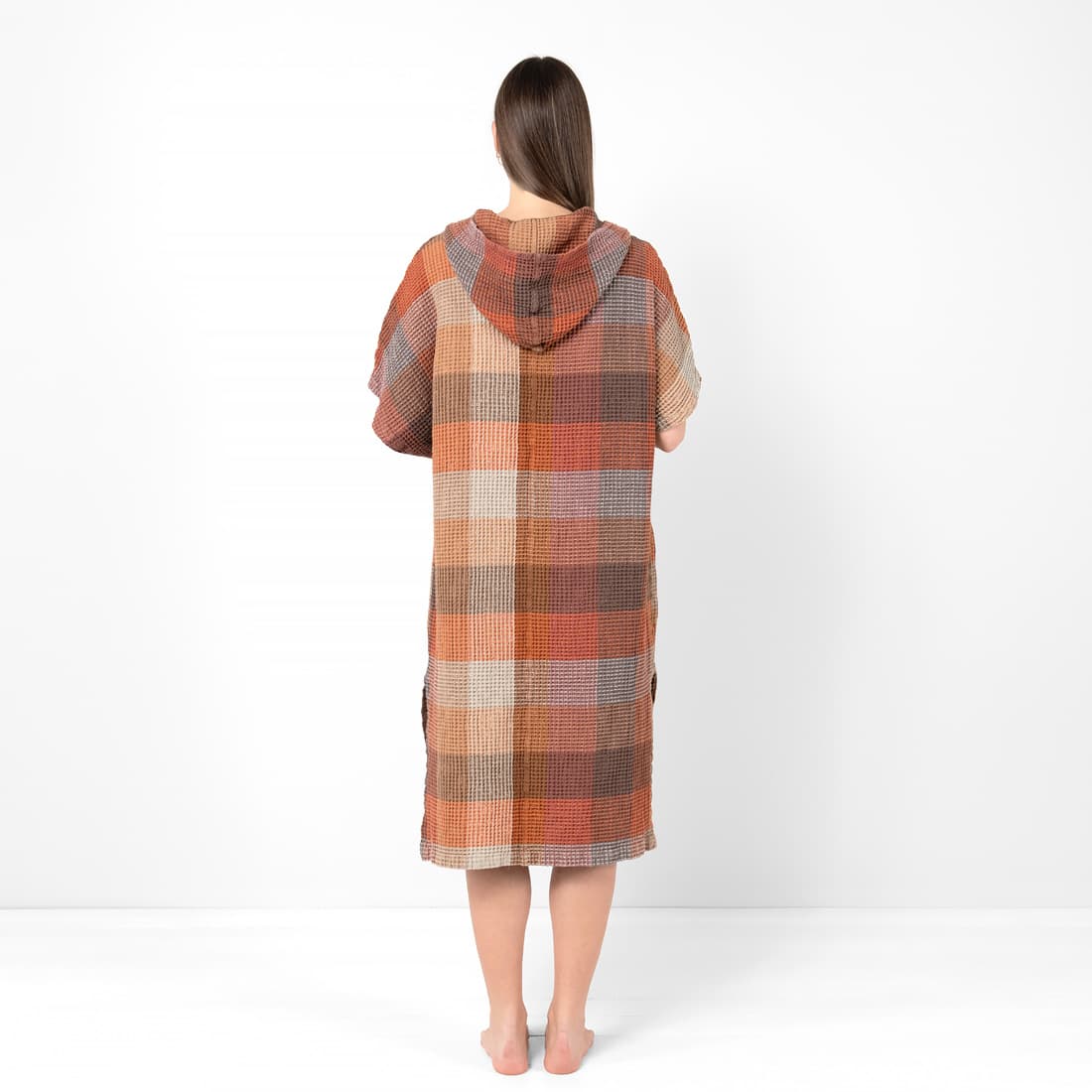 • BINGO lininis rudas languotas „vaflinis“ pončas iš minkšto, švelnaus, specialiai skalbto audinio